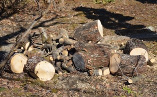 太いやつは、チェーンソーで短く切り、友人にあげるために軒下で乾燥させます。