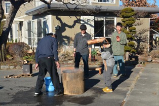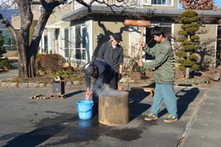 年末恒例の餅つき大会。 昨日とは打って変わっていい天気でした。