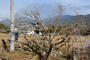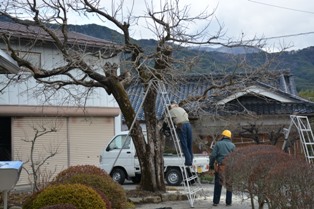 朝は寒いからと、12時に始めた柿の木の剪定。