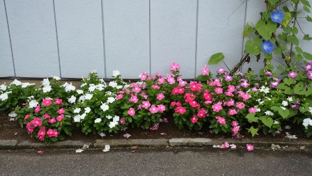 私の家では、畑の隅に撒いた朝顔が咲き始めています。