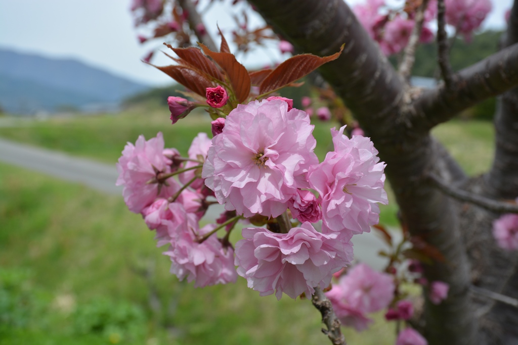 畑に3本ある桜の木の1本が葉桜です。
