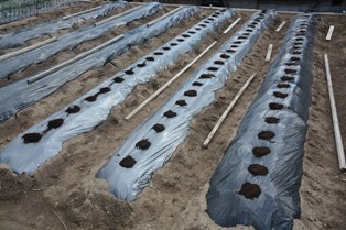 | 3.27 | ![]() ジャガイモの種芋を植え付けた。 このところずっと品種は「キタアカリ」。 かなり芽が出ているから、すぐに地上に姿を現す はずです。 |