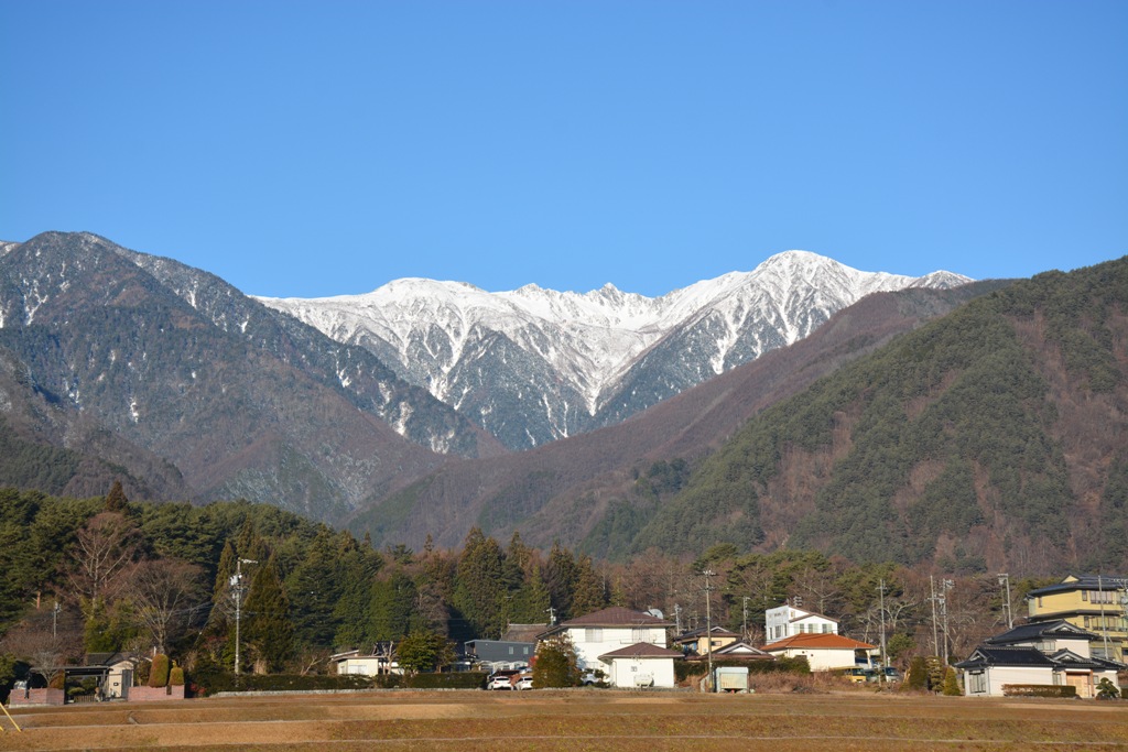 この角度から見る中央アルプスは、いちばんどっしりとしている感じです。