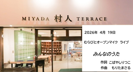 | 4.19 | 4月の「村人テラス」。ベースマンとの二回目のコラボでした。 ・春の風が吹いていたら 吉田拓郎 ・みんなのうた もりたまさる ・春を待つ手紙 吉田拓郎 ベースマンがシンコペーションのコードストロークを指導 してくれて、「春を待つ手紙」はそれで演奏しました。 音楽的にも、レベルアップしていきます。 「みんなのうた」は、字幕が入ったところでYouTubeにア ップします。 |