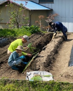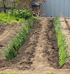 | 4.18 | ![]() 柊弥クンたちがお手伝いに来てくれて、長ネギの苗を約500 本植えた。 今までと変えたのは、管理機が 余裕をもって入れるように畝間 を広くしたことと、浅植えにし たことです。 ネギの白い部分が長くなるよう に、土をできるだけ深く掘って いたのですが、その部分にはも う肥え土がないため、育ちにく かったのではないかと考えたの です。 さあうまくいくでしょうか? |
