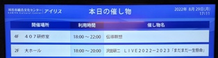 | 8.29b | ![]() なぜ刈谷なのかということだが、当初次の日は午後からの 仕事が入っていたから、流れ的にはいいのではないかと思 ったからだ。 だから朝移動することを考慮して、三河安城に泊まることにしたが、コロナの影響で今週の仕事がなくなってし まったので、単独行となったのだった。 沢田研二のファンクラブはなくなってしまったので、チケットは完全に抽選になっていたけれど、そんな条件下 でも、前から7列目をゲットできるなんてすごいことだ。 今夜は客席を明るくすることが多かったが、私の位 置は沢田研二の正面だった。 着ていた白いシャツが、汗で透けて肌が見えるほど動き回った沢田研二。来年の6月25日には、ドタキャンし たあの「埼玉アリーナ」でコンサートをするという。 |
