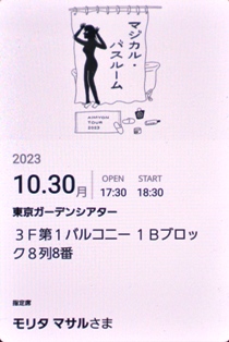 | 10.31 | スマホに届いている電子チケットの画面では会場に入ることができず、ちよ うど開場1時間前に届く入場券を提示しなければならない。 この入場券はチケットの画面をタッチすると現れるのだが、最初はこの仕組 みがわかっていないからドギマギしてしまう。 会場の入り口でこの入場券をかざすと、スタ ッフがスタンプ(デジ タルの)を押してくれ て、そこでやっと席の 番号が表示されている チケットが有効となる。 電子チケットは、転売 を防止する意味では有 効なのだが、持ってい るスマホが他人のもの だとしても入場するこ とができるだろうから、 将来的にはこれに顔認 証などが追加されることだろう。 さて、25曲を歌いきる2時間50分立ちっぱなしのライブ。 来年もやるだろうけど、はたして行くだけのパワーが、74歳にあるだろうか? |