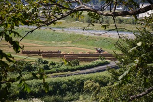 | 9.24a | 刈払機で刈ったあとの草を集めないと、土に陽が当たらなくなって膿(う)んでしまうから、その都度集めて堆 肥にしていた。 しかし今年は、体力を必要とするこの作業から逃げて、草が乾燥した後でそのまま燃やしていた。 そうすると土が焼けて石が露出することはわかっていたけれど、想像以上にたくさんの小石が現れてしまった。 この土手の石は今までにかなりの量を拾ったのに、この冬はまた石拾いを再開しなければなりません。 |