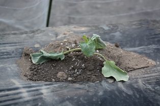 | 9.15 | 先週植え付けた白菜。 苗が虫食いだらけだったので、育ってくれるかどうか心配 だったけれど、1箇所だけ枯れてしまった場所があるだけ で、思っていたよりも大きくなっていてくれました。 植えたのは、収穫可能な時期が65日、75日、85日の 3種類を16本ずつ、合計で48本です。 苗が小さなうちは毎日水やりをして、日曜日に2本を1本 に間引きます。 |