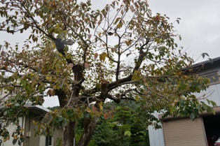 膿んだ柿の実は、放っておくとアスファルトの上に落ちてしまうので、高枝挟みを使って採り始めたけれど、こ