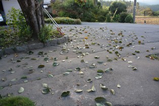 4日ぶりに帰ってきた自宅の庭には、渋柿の葉っぱがいっぱい落ちていた。