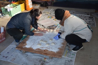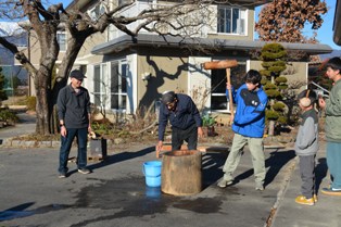 年末恒例の餅つき大会。 昨日とは打って変わっていい天気でした。
