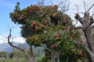 | 4.16 | 私が生まれたときから、自宅の玄関の前に大きな椿の木が ありました。 去年は剪定をしなかったので、こんなにたくさんの花を付 けたのです。 それまでは、私が剪定をお願いするときに、庭木仕様にし て欲しいと言ったため、木はすっきりしたのですが、花を 付けなくなってしまっていました。 こんなにも大きな木で、ピンク色の花びらをつける椿は、 そんなにあるものではないでしょう。 |